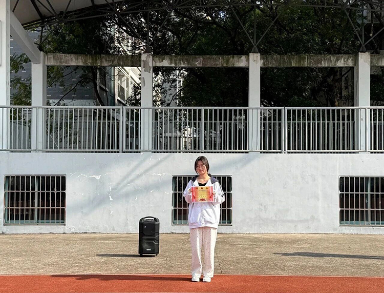 首先,由政教处唐老师颁发十月份“优秀学生”奖(24一班周婉婷同学)及“优秀文明宿舍”奖(男生宿舍314,女生宿舍301)。