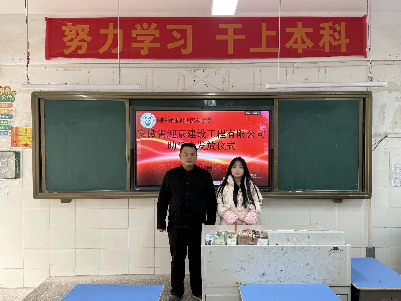 浓浓真情助学子,深深爱意暖人心!2025年12月我校举行了企业捐资助学金发放仪式。安徽省迎京建设工程有限公司陈总莅临我校参加企业捐资助学金发放仪式。