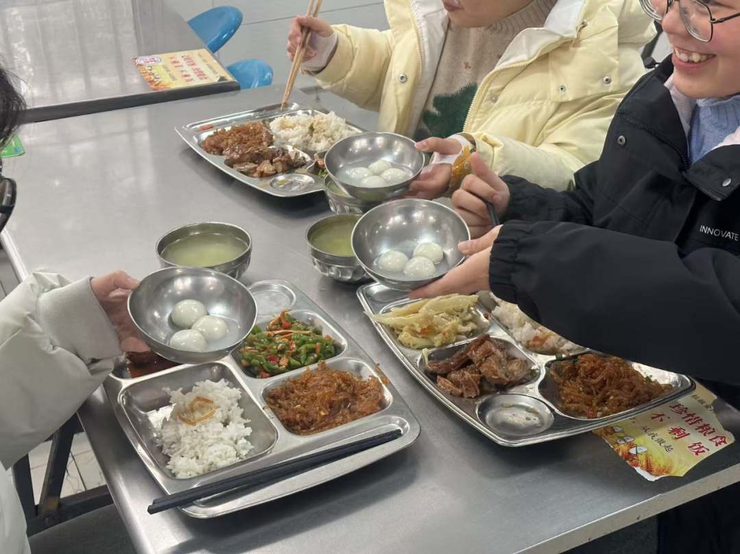 就餐时,同学们看到刚出锅的汤圆、香气扑鼻的饭菜,欢呼雀跃,垂涎欲滴,他们一边津津有味地品尝着美味的汤圆,一边享受着与亲密伙伴的团圆之喜,满满的幸福感溢于言表。